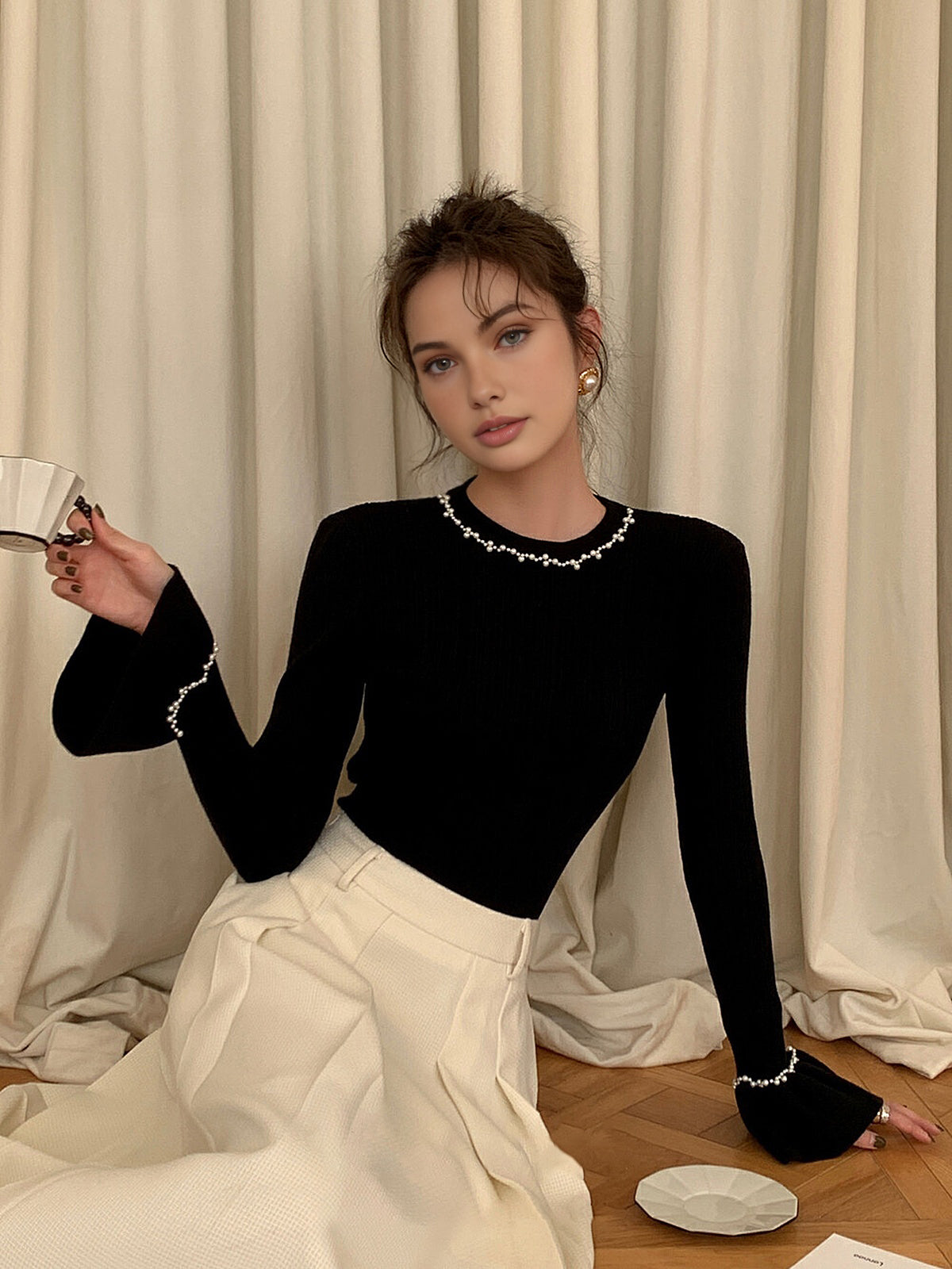 Boncuklu Süslemeli Volanlı Örgü Üst