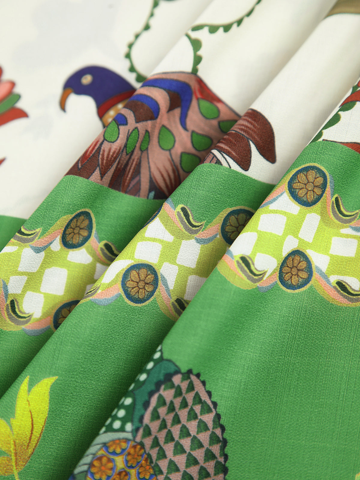 Kuş Desenli Cepli Askılı Uzun Elbise