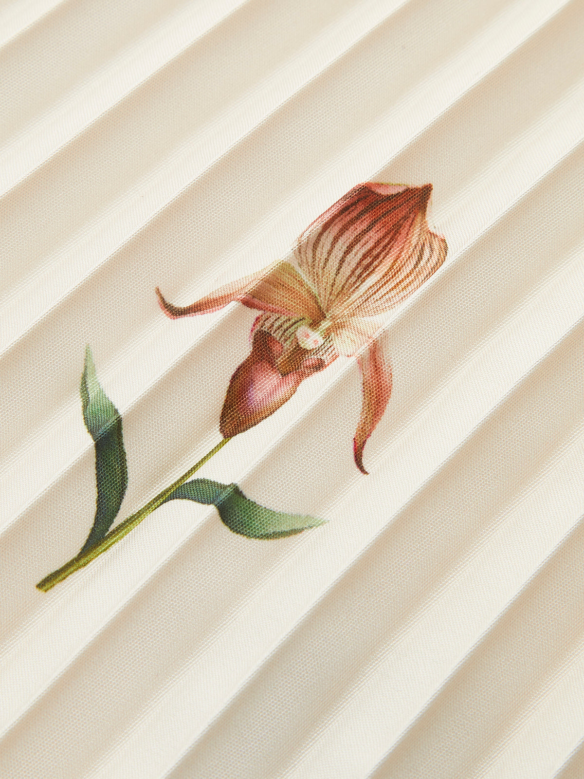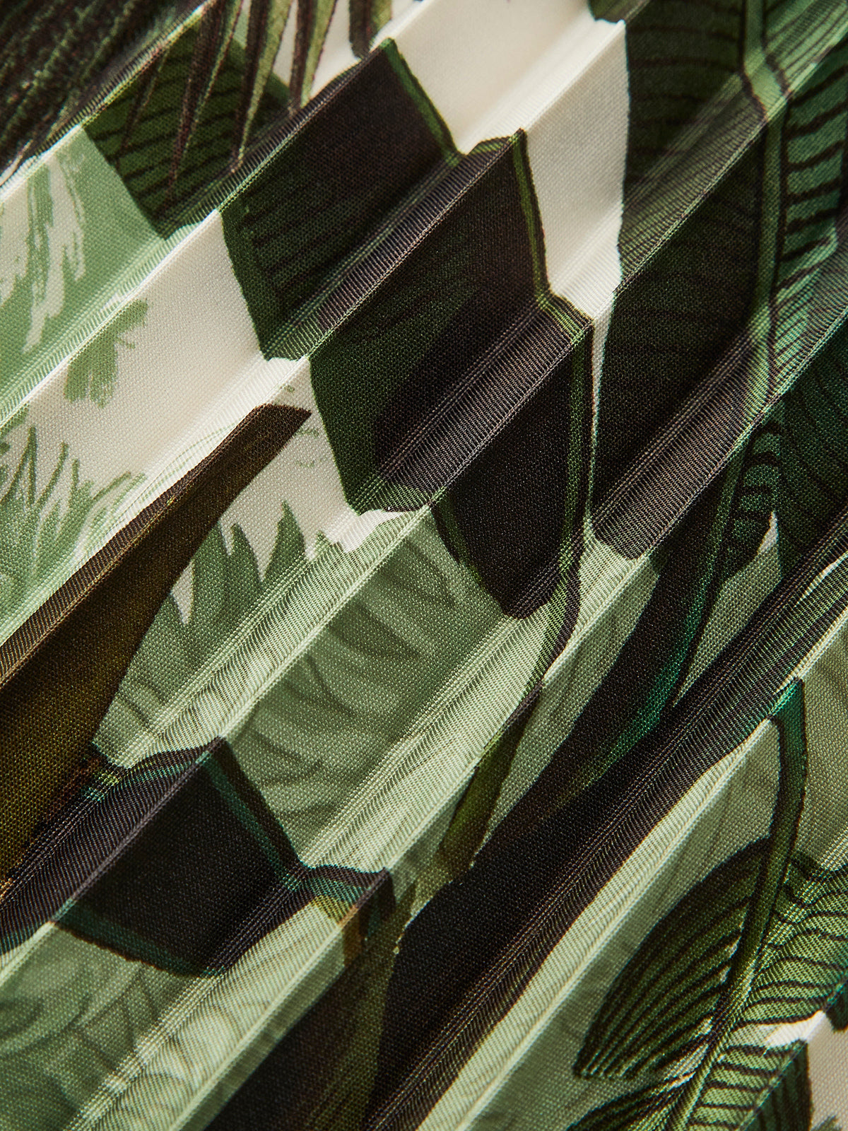 Boho Desenli Orta Bel Büyük Boy Pileli Fermuarlı Etek