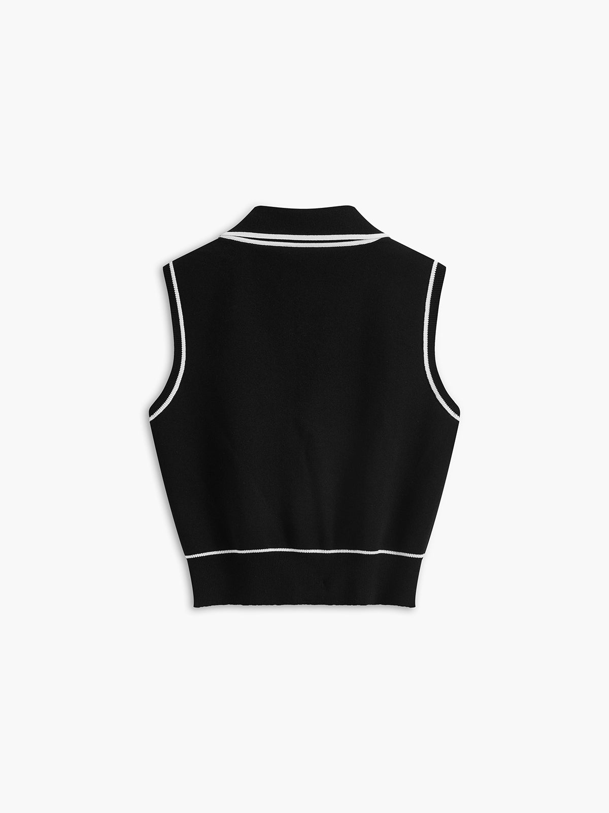 Önü Düğmeli Kontrast Bağlamalı Kolsuz Etek Takımı