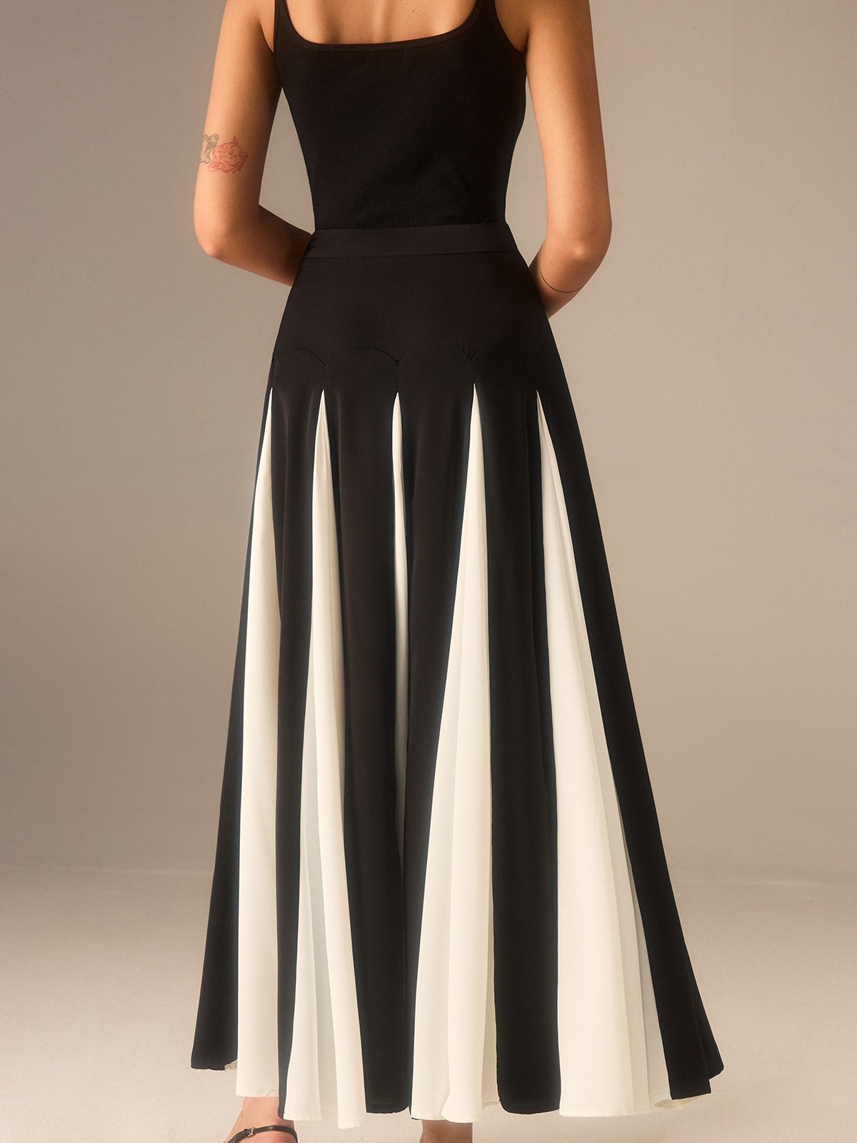 Ek Panelli Renk Bloklu Midi Etek