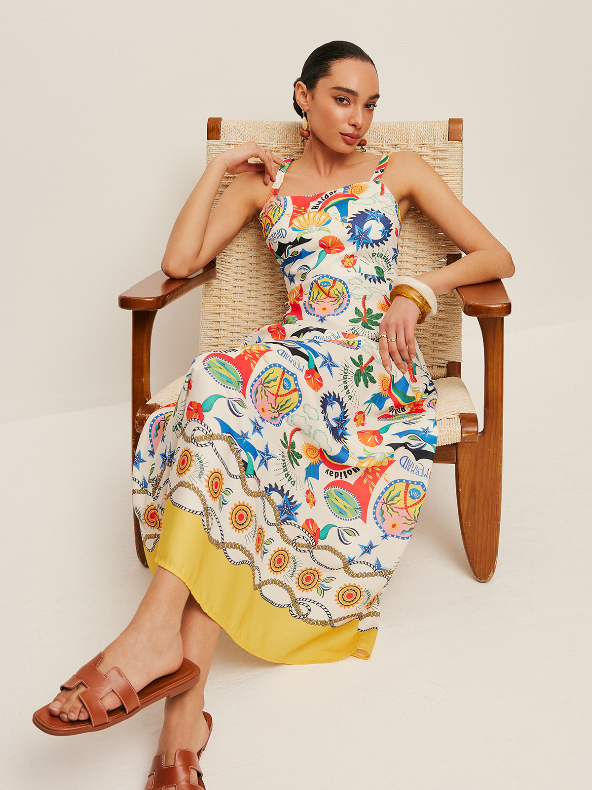 Renkli Baskılı Askılı Elbise