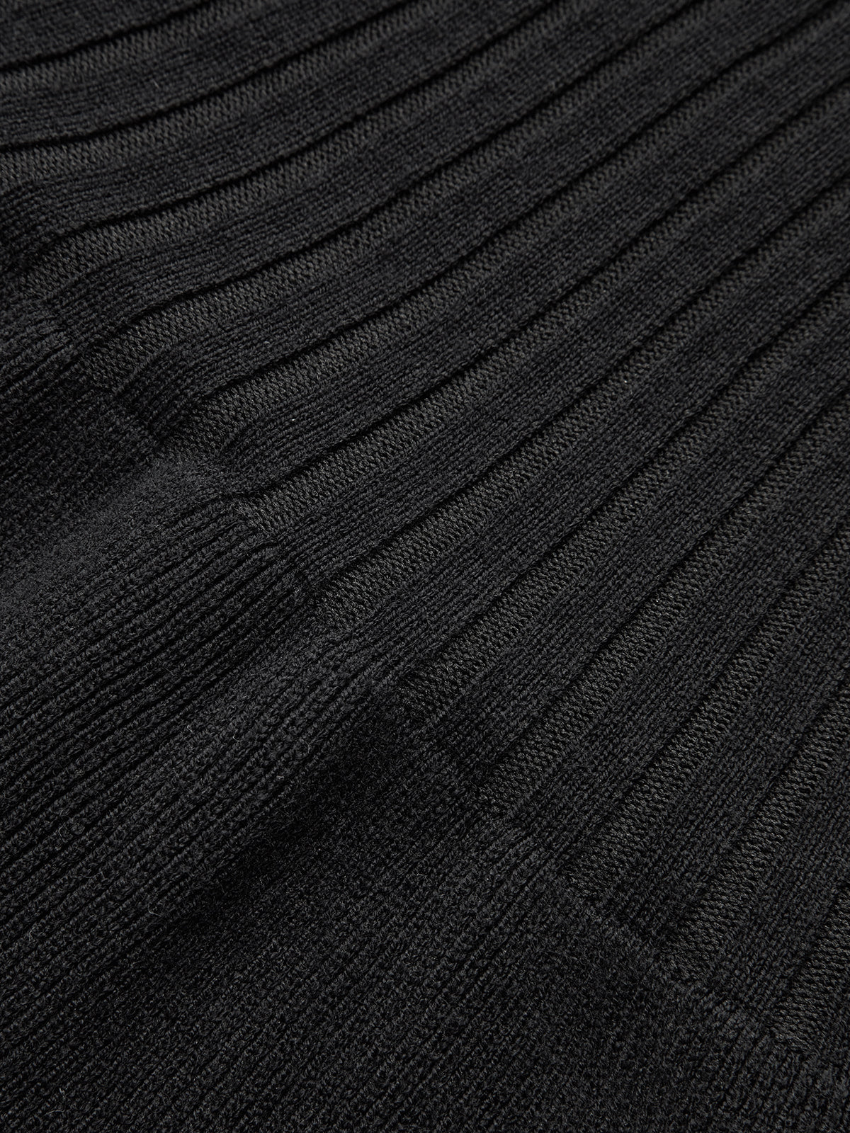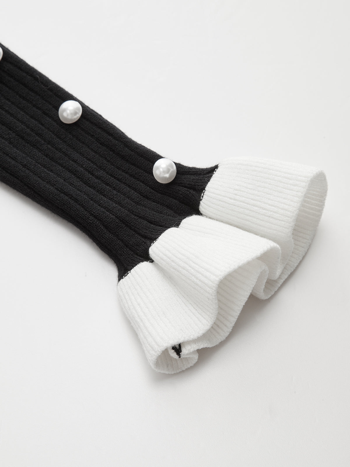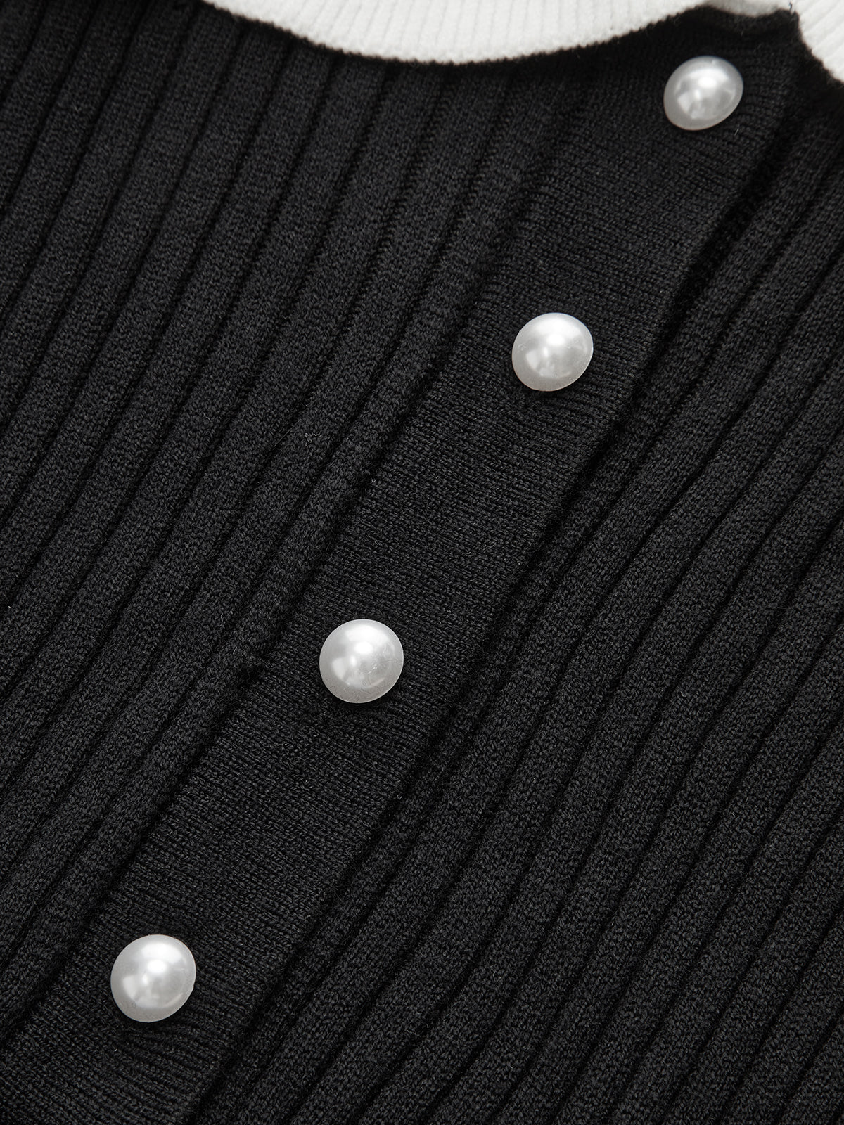 Kontrast Fırfırlı Yaka Örgü Midi Elbise