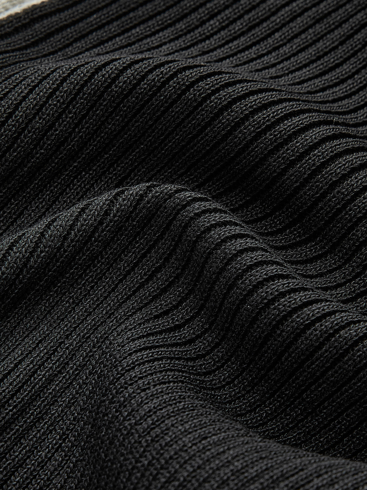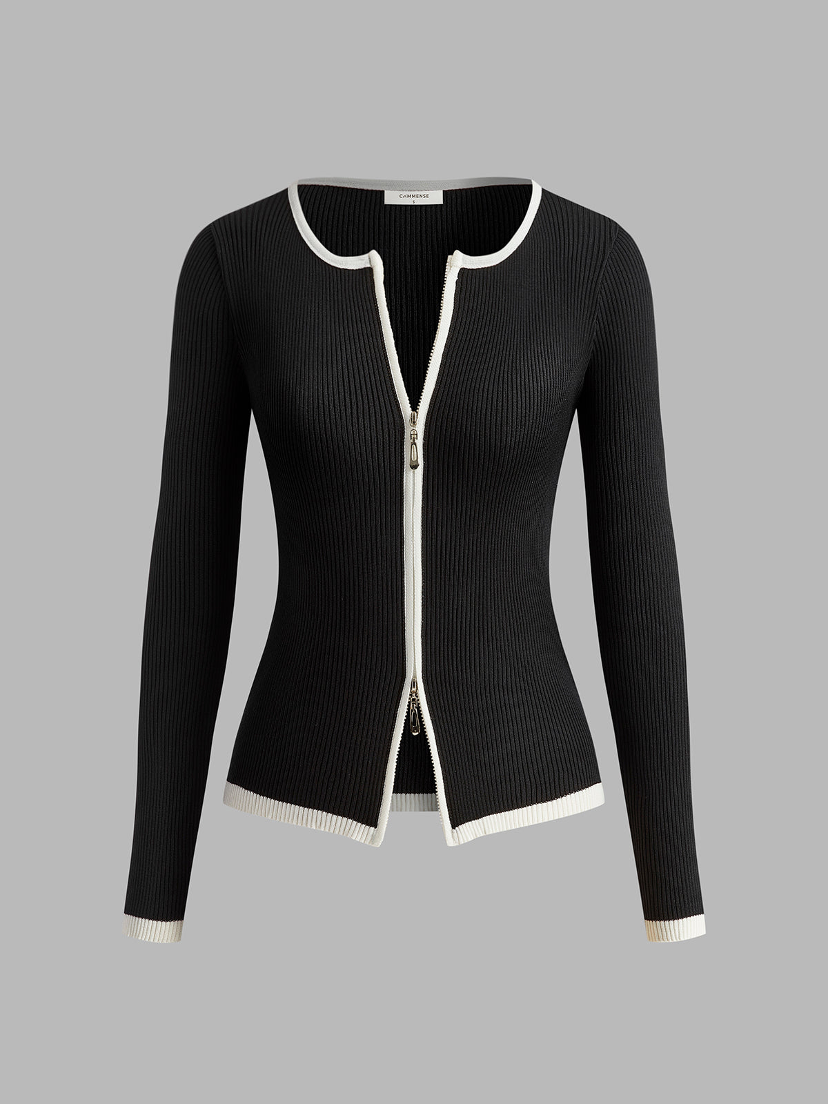 Kontrast Kesim Çift Fermuarlı Örgü Üst