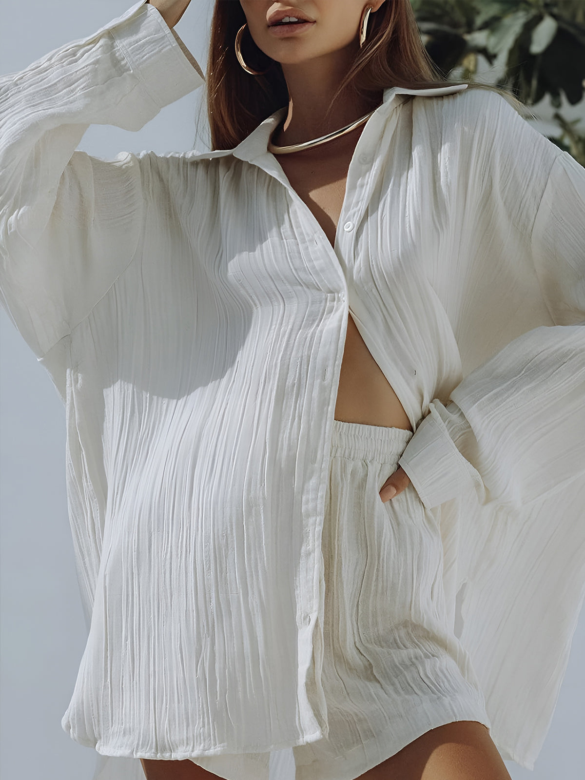 Pamuk Karışımlı Cepli Bağcıklı Şort Takımı