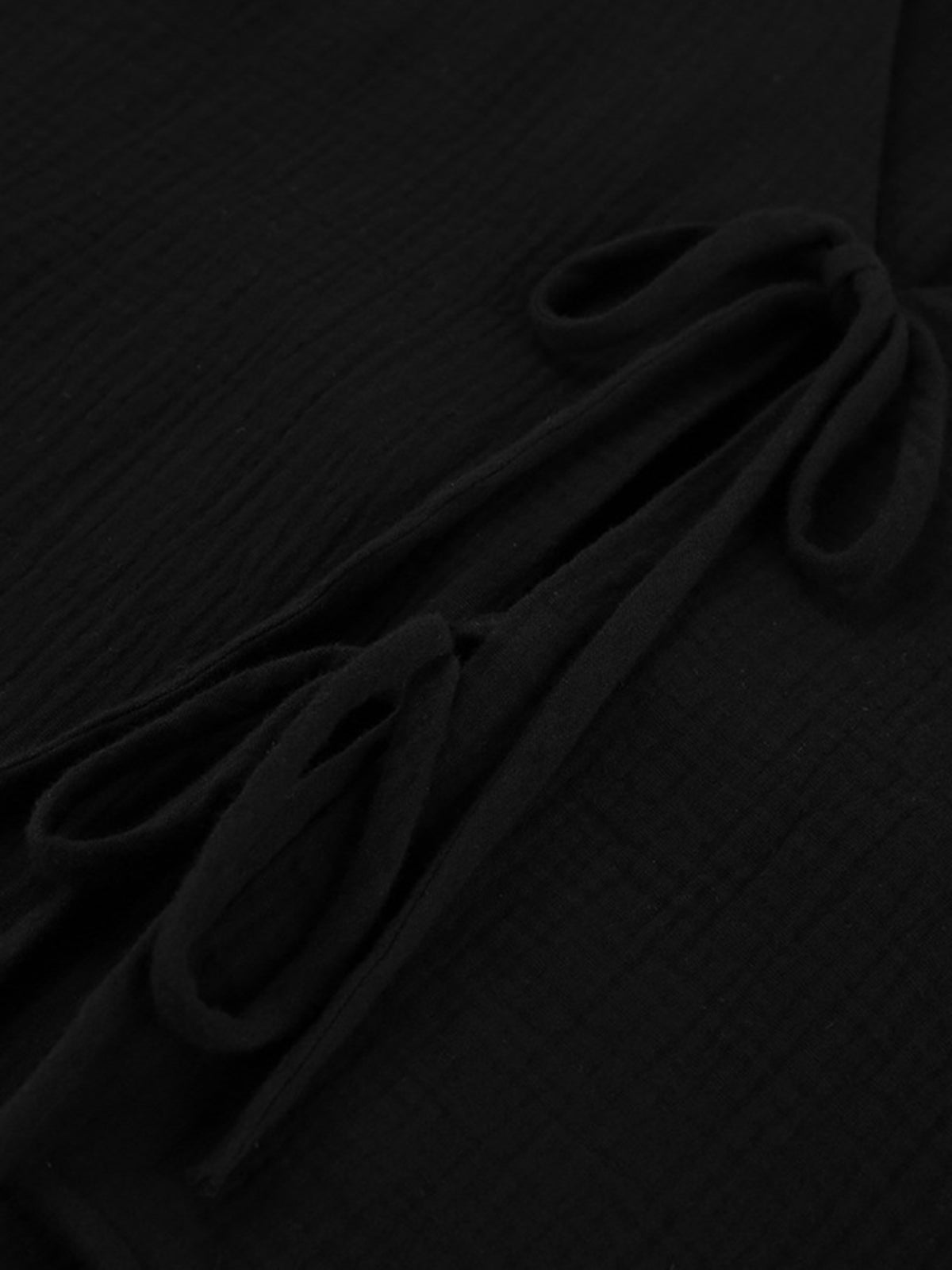 Pamuklu Önden Bağlamalı Uzun Kollu Şort Takımı