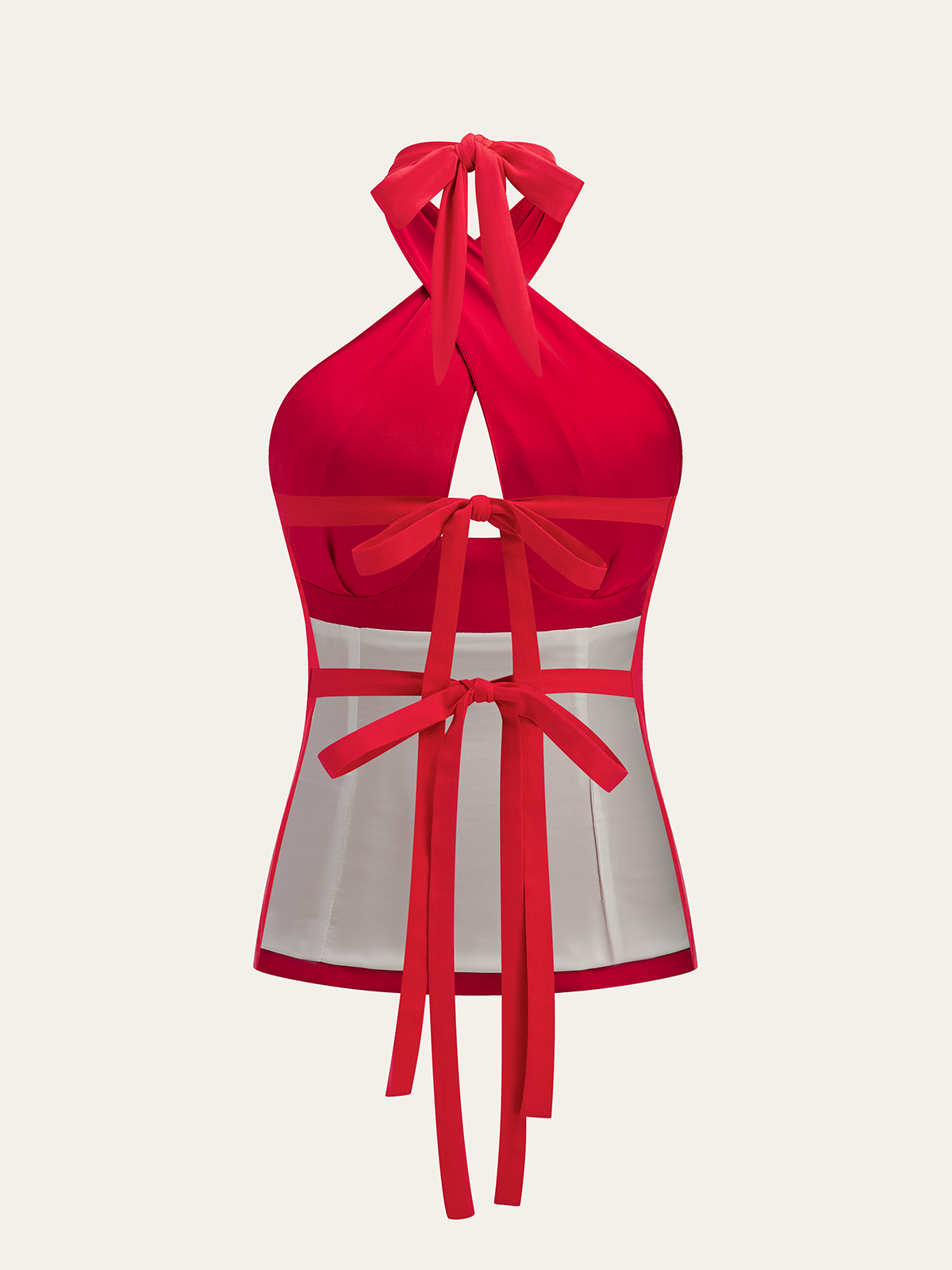 Denizotu Kontrast Bağlamalı Tek Parça Mayo