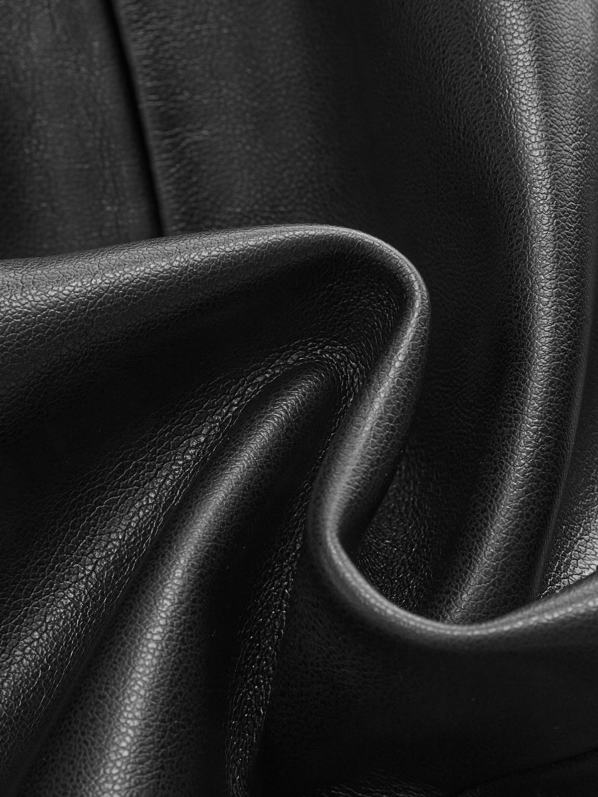 Suni Deri Yuvarlak Yaka Metal Düğmeli Dar Blazer