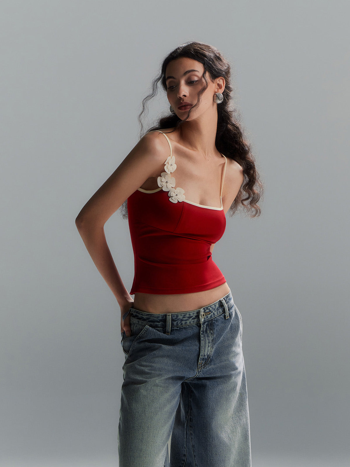 Çiçek Kontrastlı Vücuda Oturan Askılı Üst