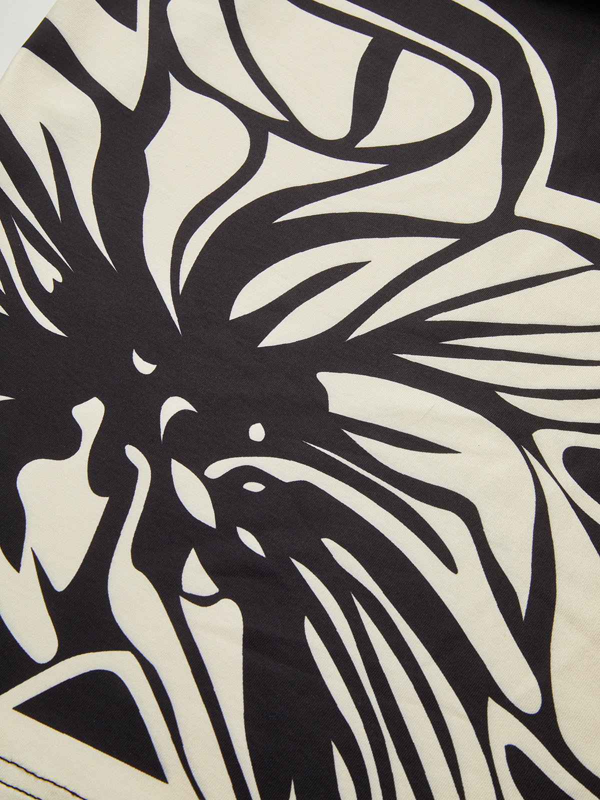 Çiçek Baskılı Büzgülü Derin V Yaka Midi Elbise
