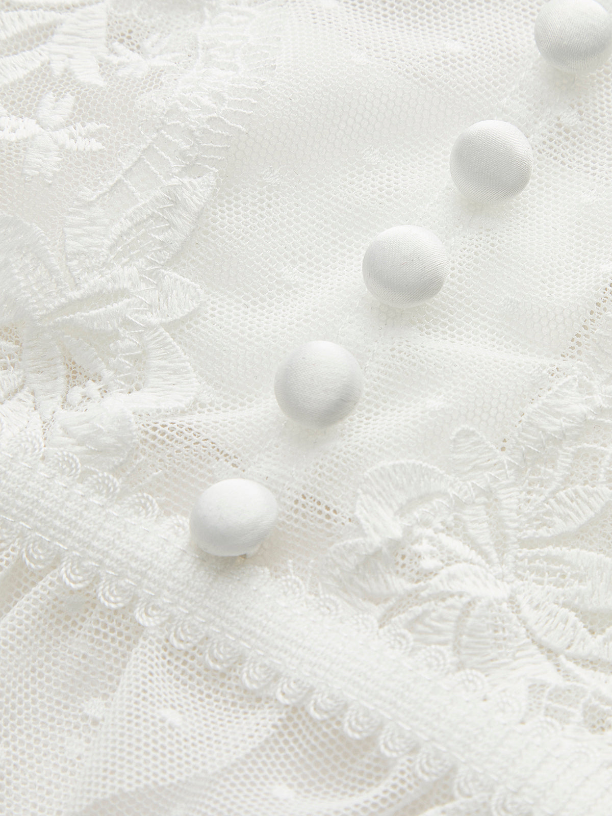 Çiçekli Şeffaf Dantel File Korse Kısa Üst