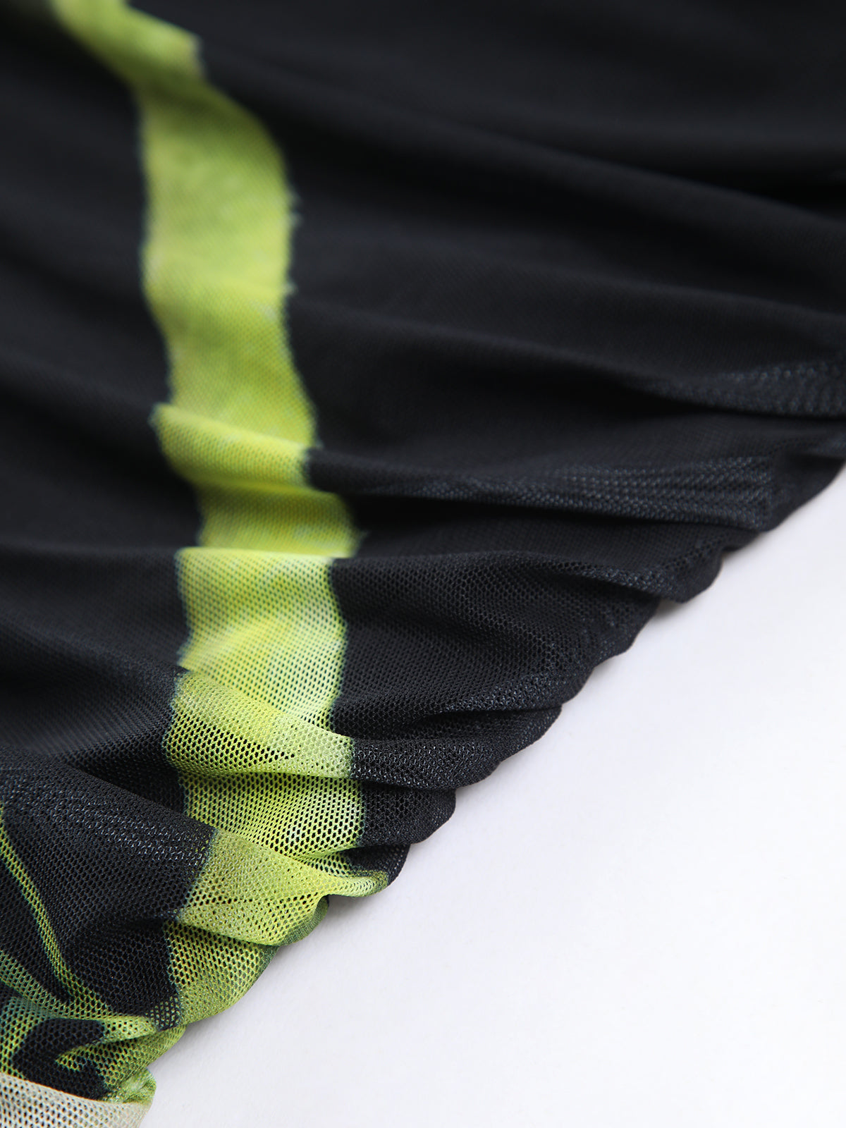 Gardenya Çiçekli File Pileli Tüp Midi Elbise