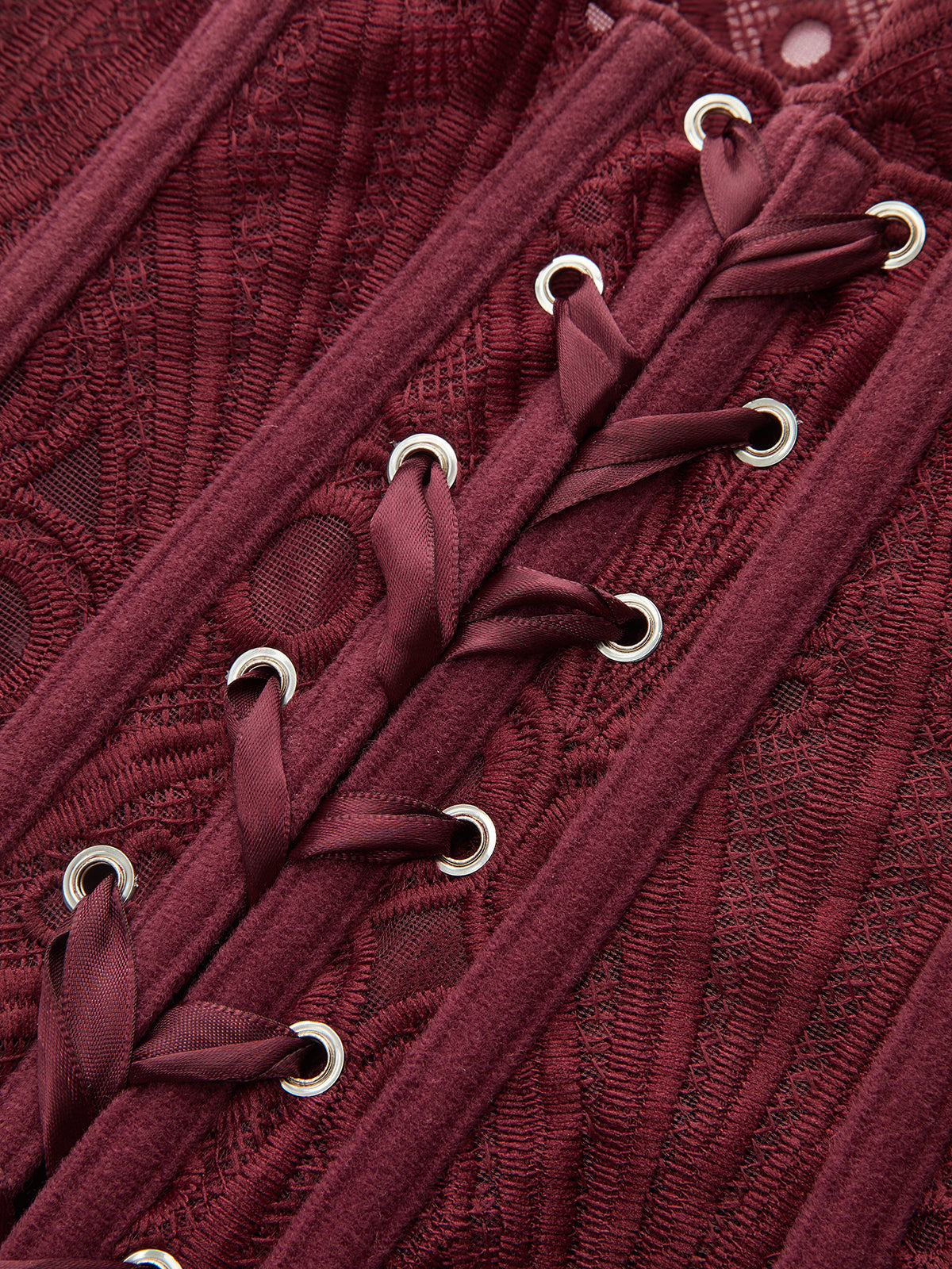 Dantel Kesimli Ayarlanabilir Sırt Bağlamalı Korse Üst