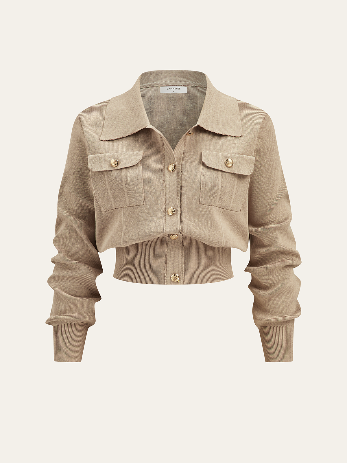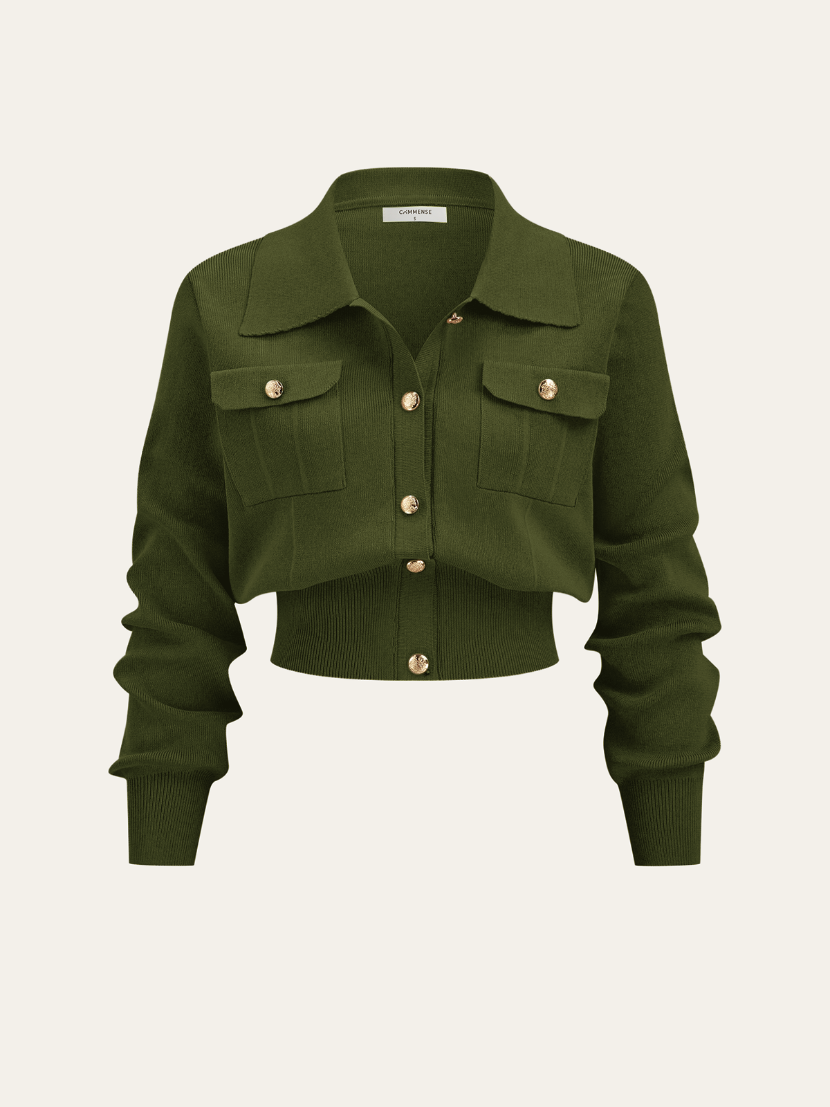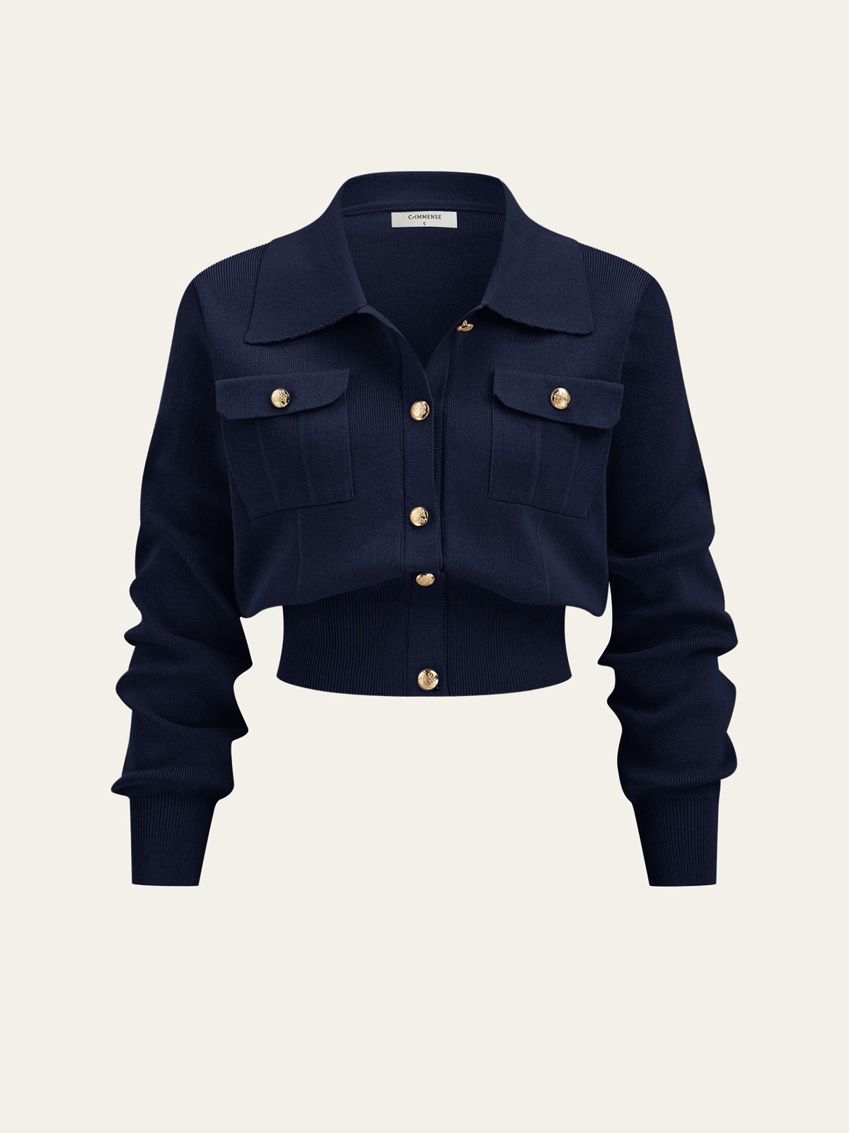 Metal Düğmeli Yakalı Hırka ve Midi Etek Takımı