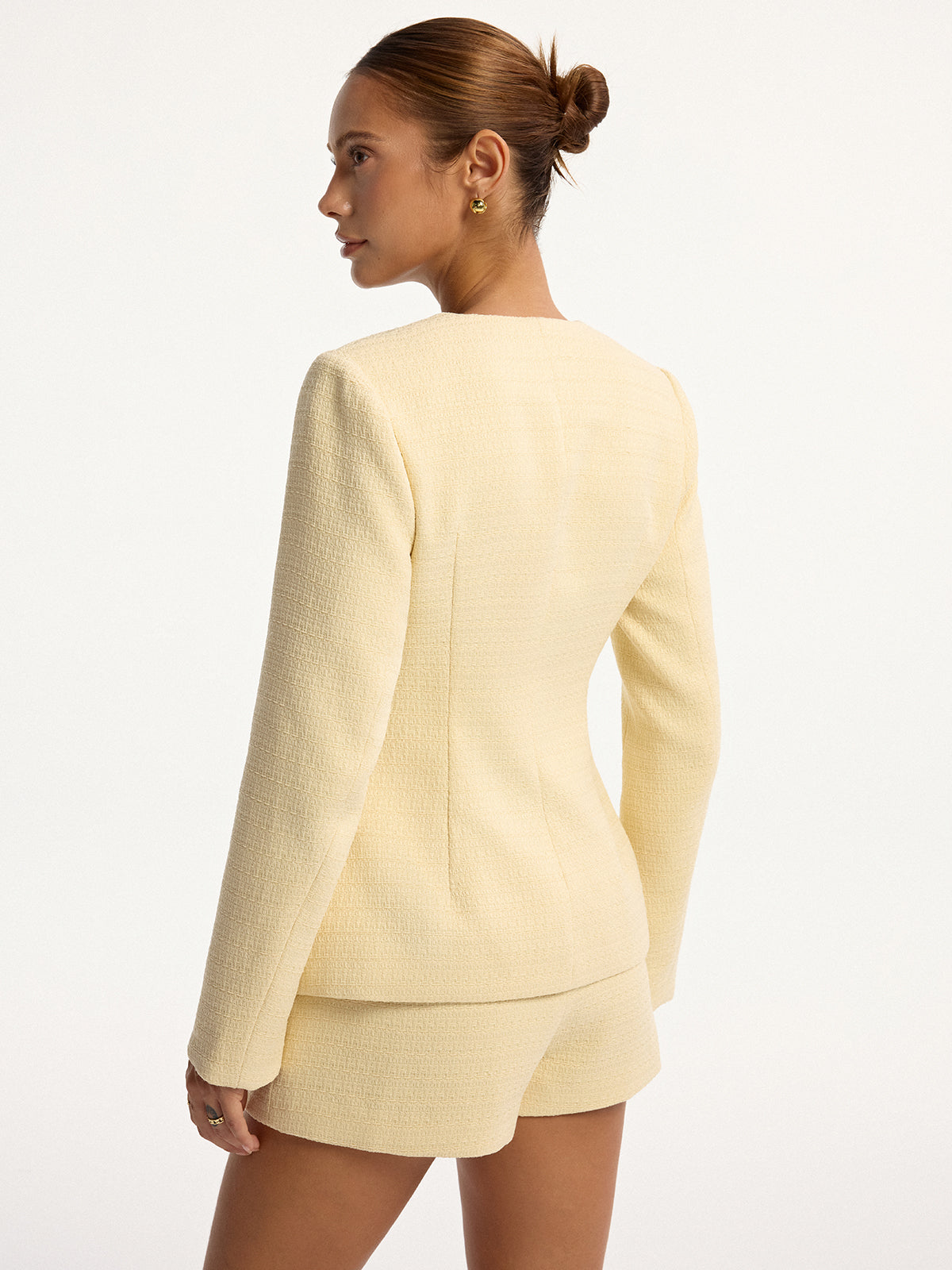 Metal Düğmeli Tweed Üst ve Şort Takımı