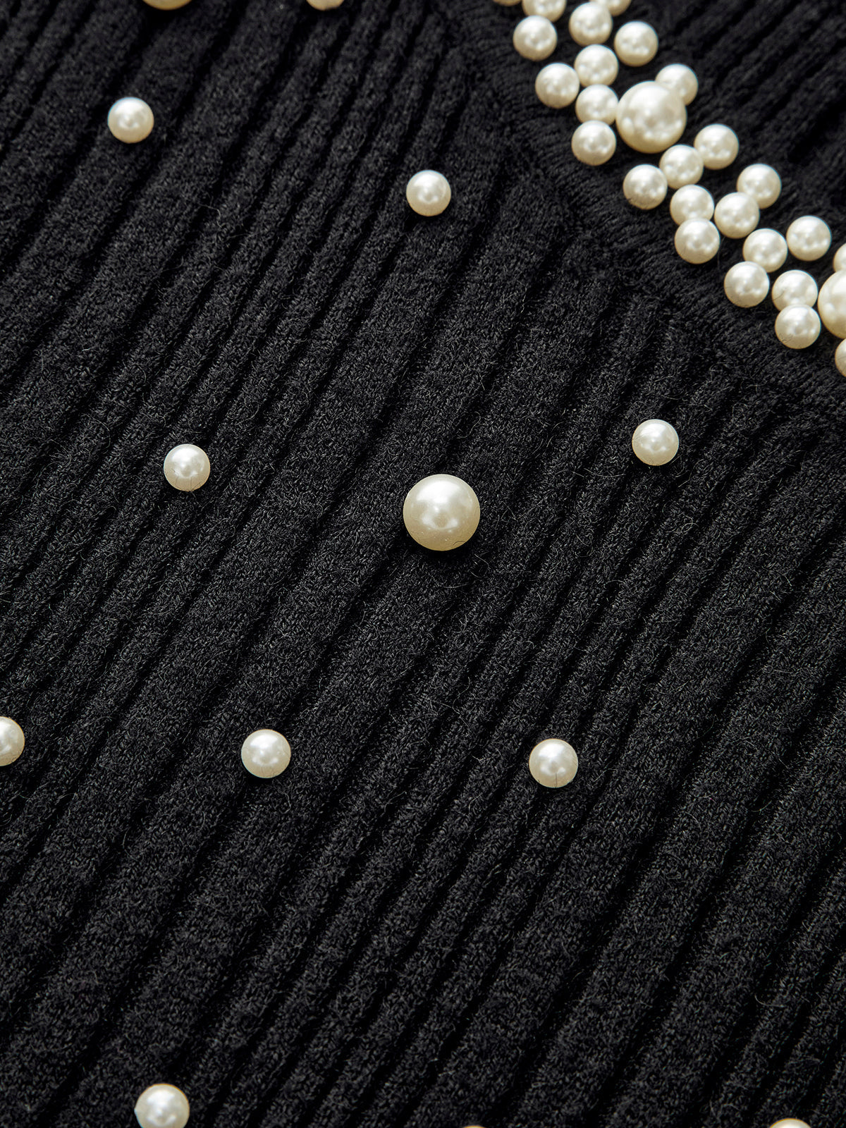 İnci Dekorlu Volanlı Manşetli Örgü Üst