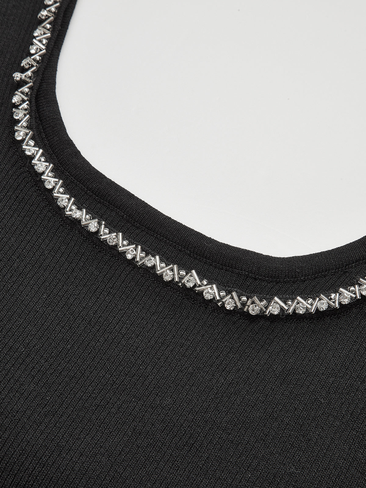 Taşlı İşlemeli Slim Fit Mini Elbise