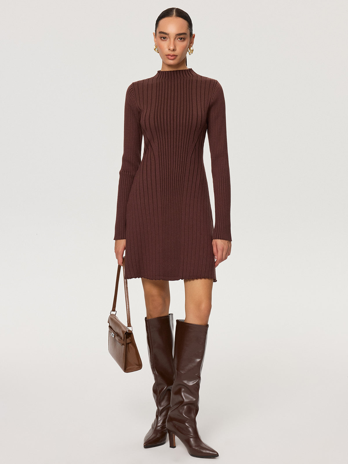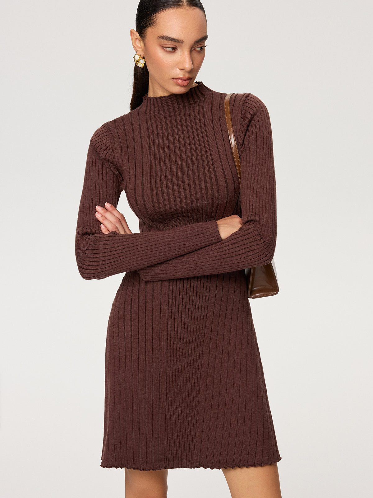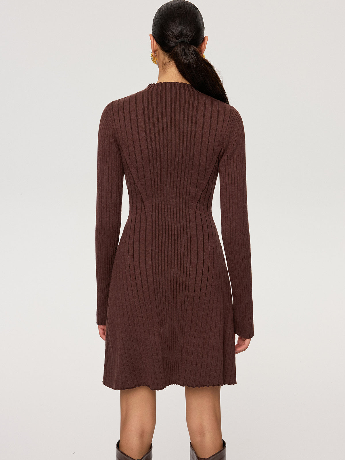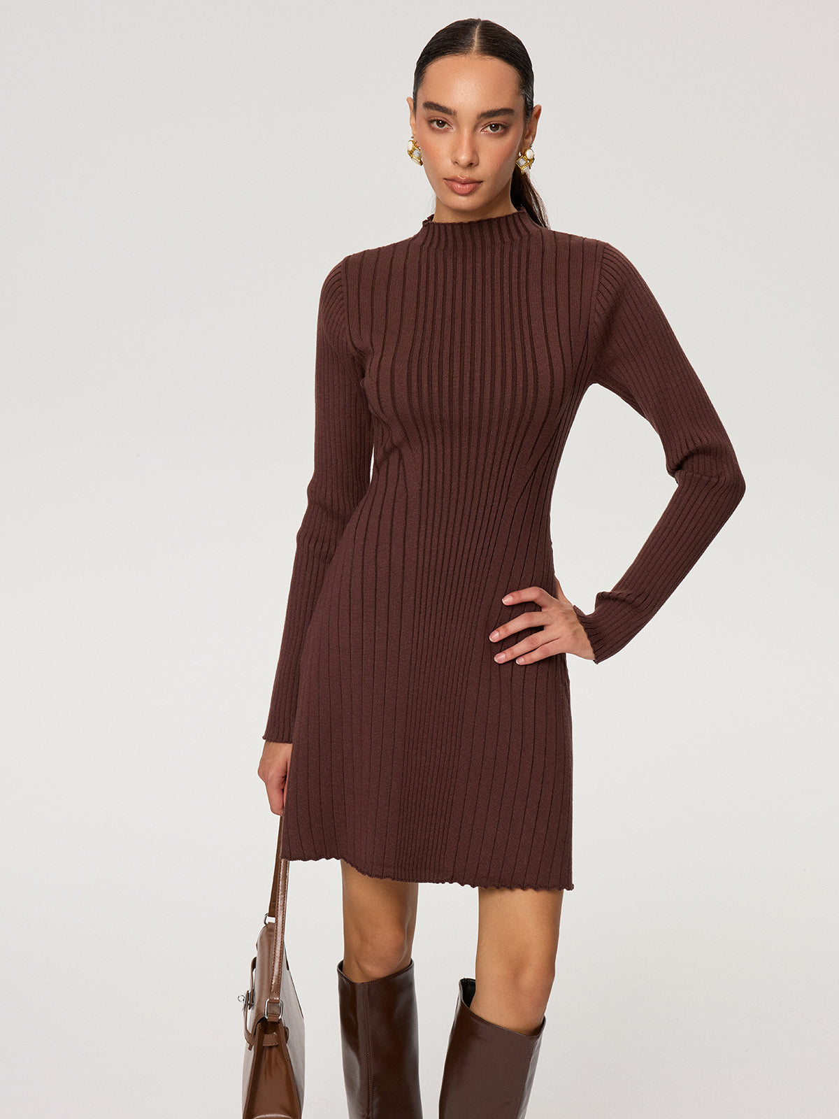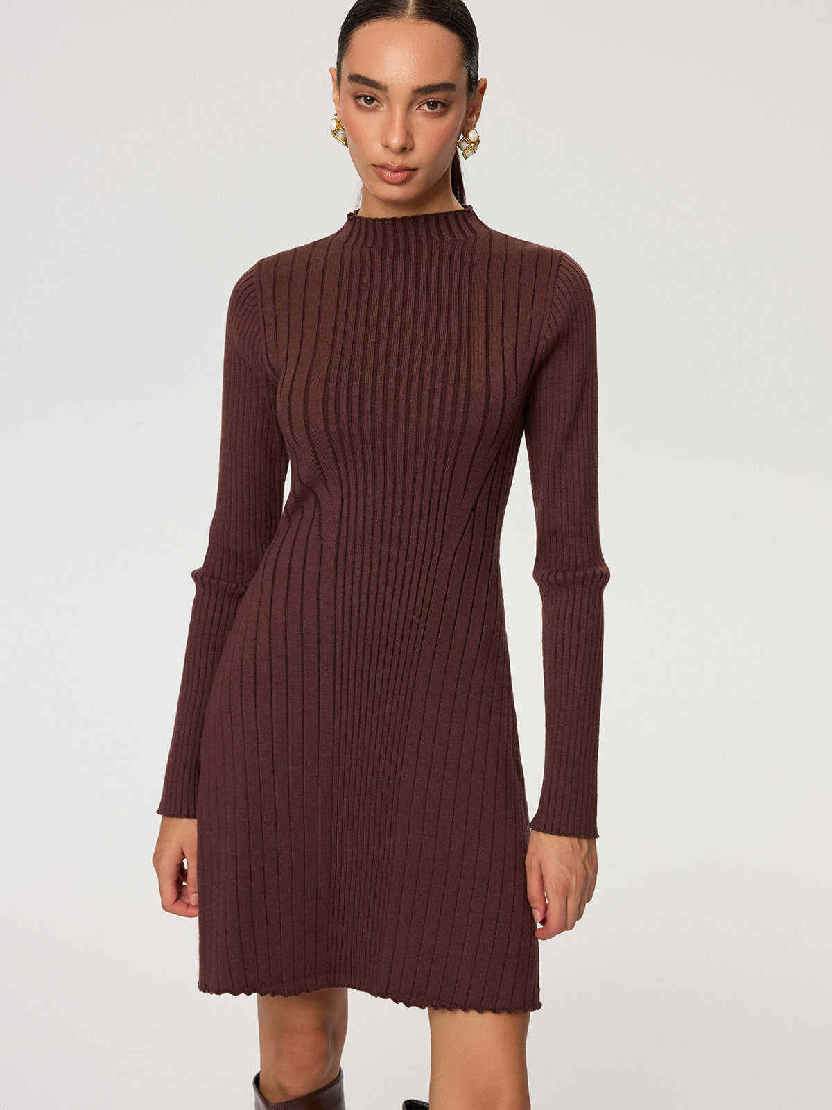 Ribanalı Dik Yaka Uzun Kollu Örgü Elbise