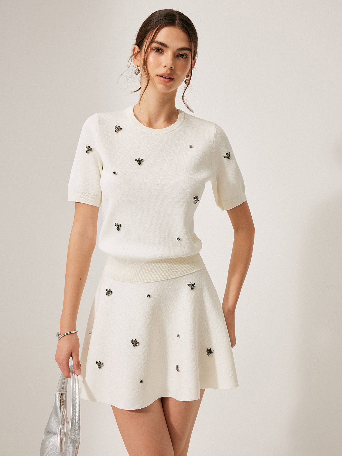 Karın Kontrol Dokulu Boncuklu Tek Parça Mayo