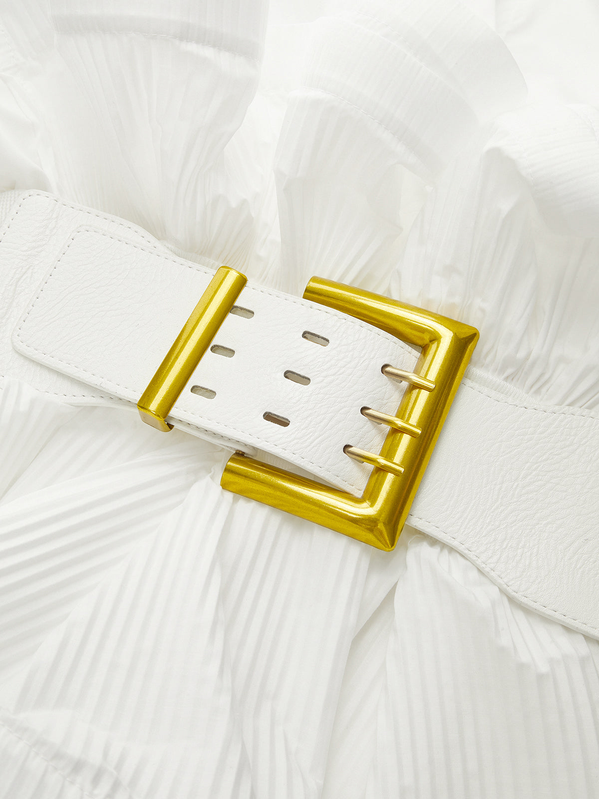 Dik Yaka Kemerli Fırfırlı Gömlek