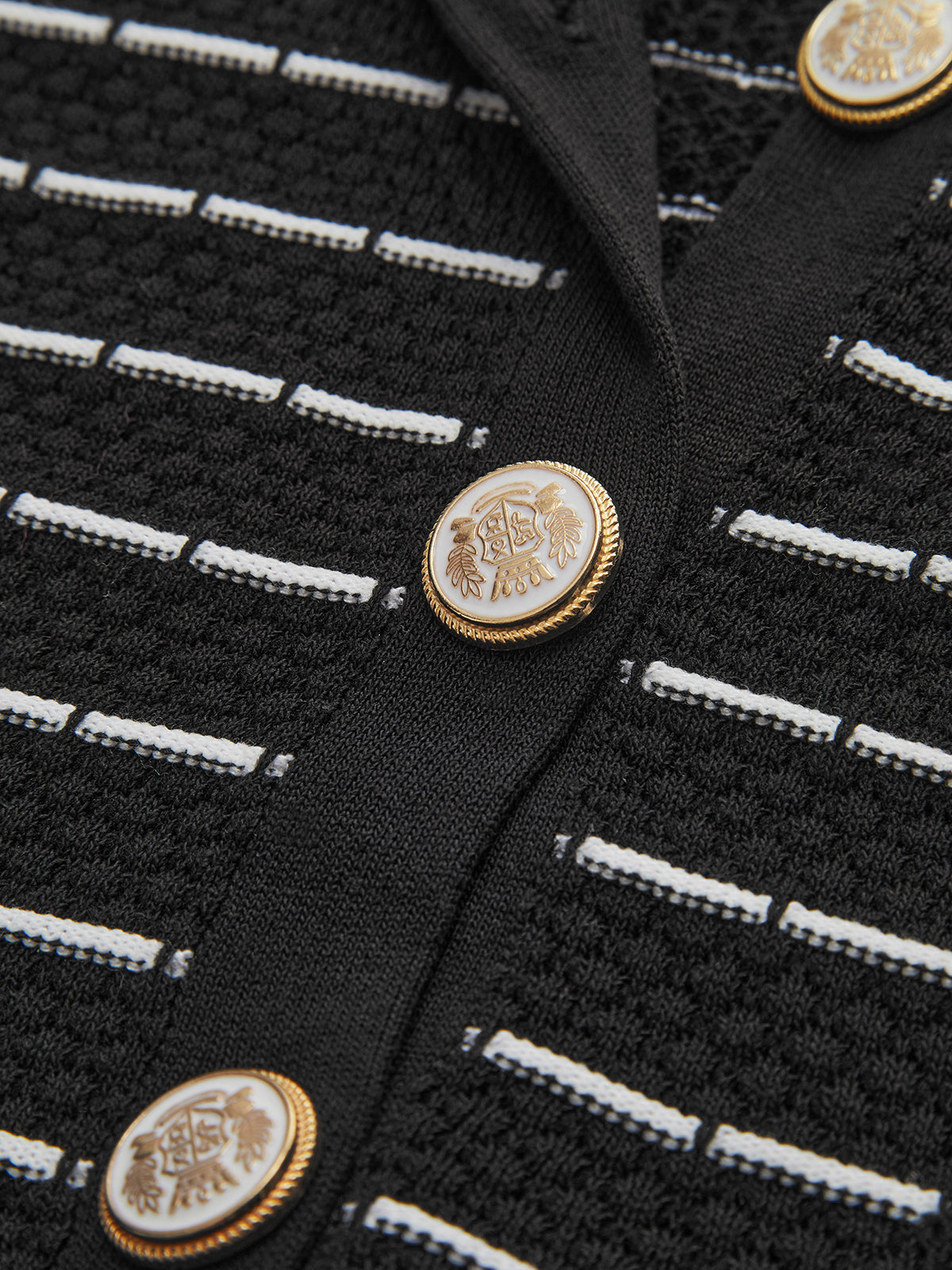 Çizgili Metal Düğmeli Uzun Kazak Elbise