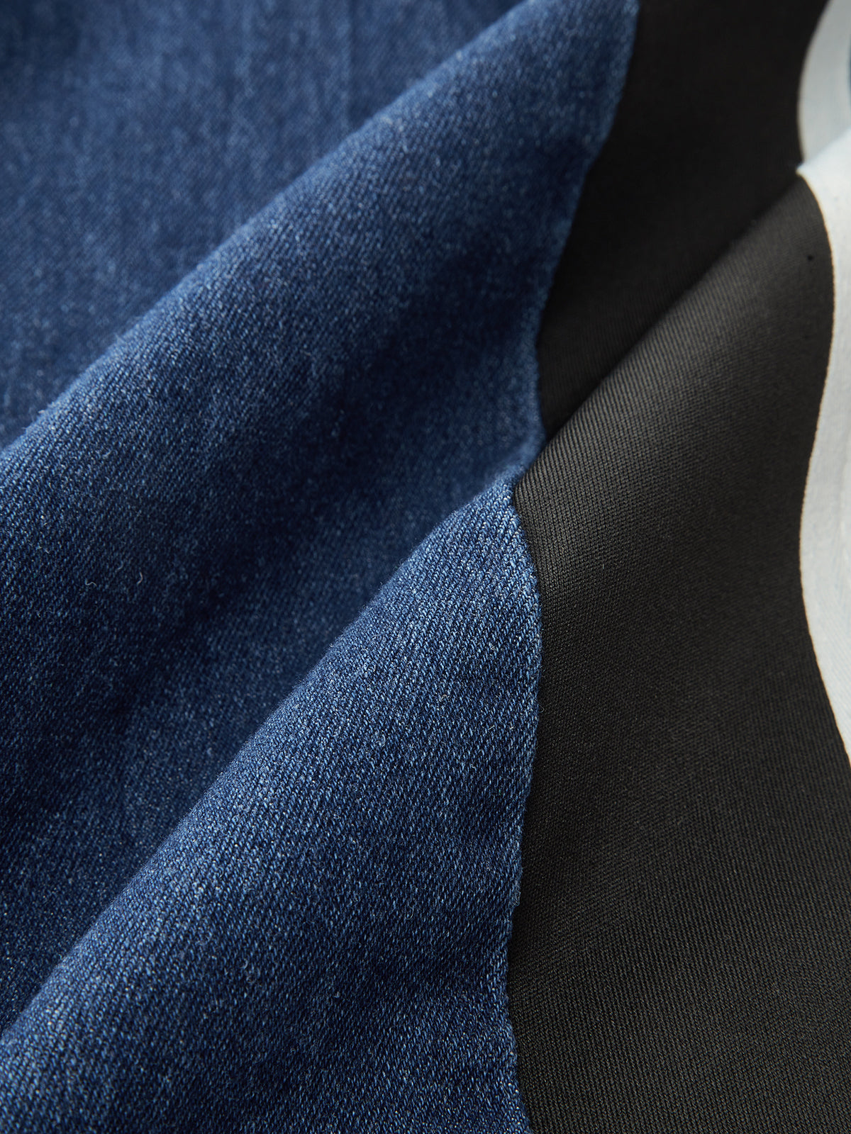 Çizgili Yan Panelli Orta Bel Kot Pantolon