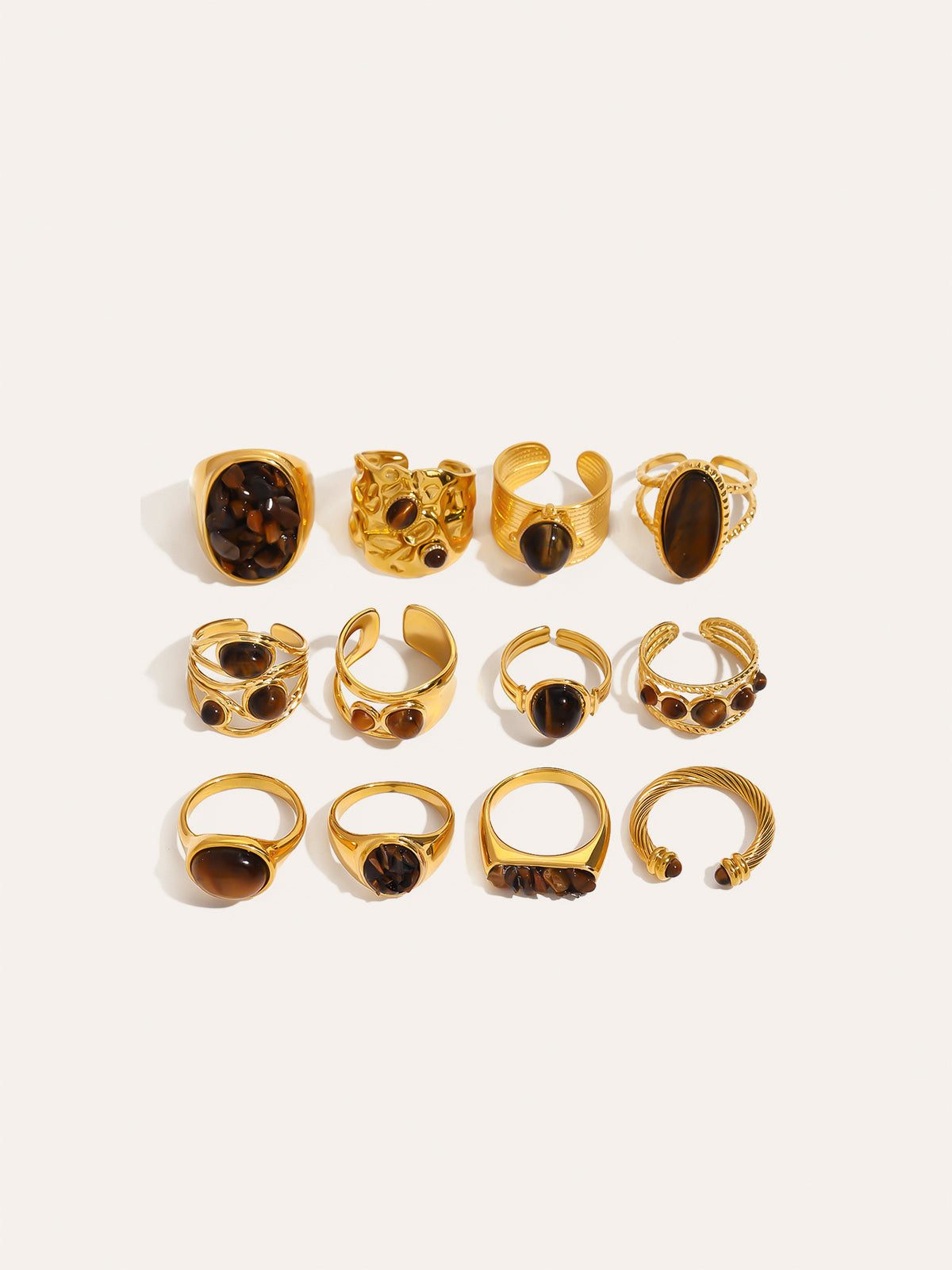 Kaplan Gözü Taşlı Titanyum Çelik Yüzük