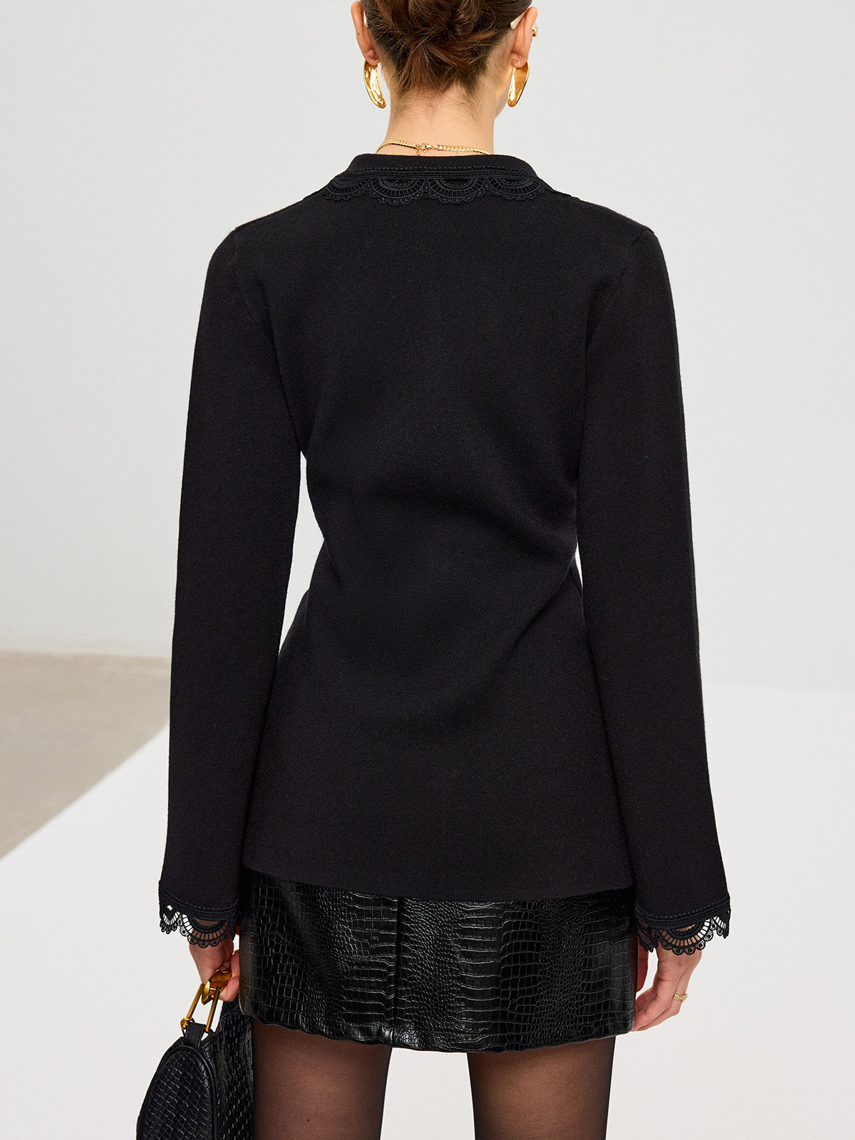 Yün Karışımlı Dantel Kenarlı Metal Düğmeli Hırka