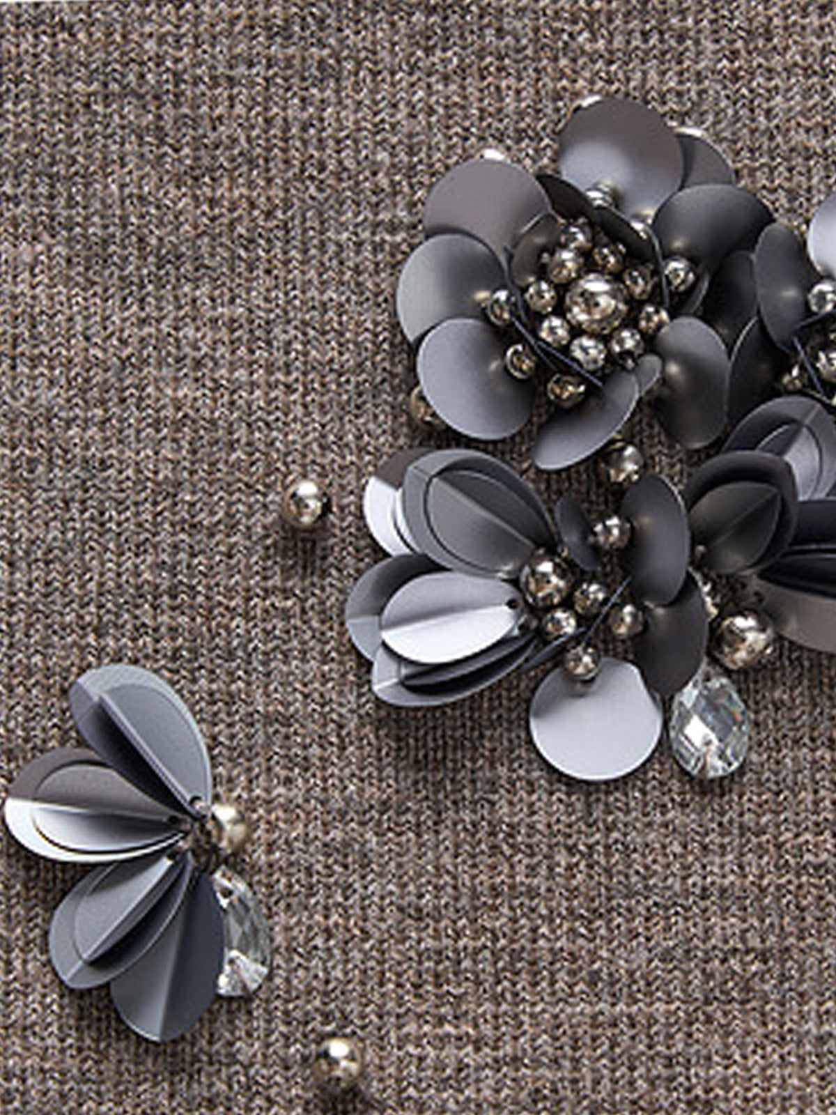 Yün Karışımlı Pileli Payetli Kazak Etek